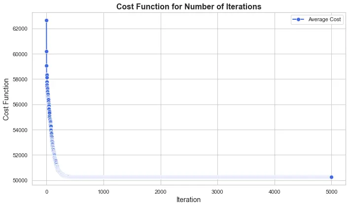 Fig. 1: Graphing the average cost function over number of iterations within the annealer.