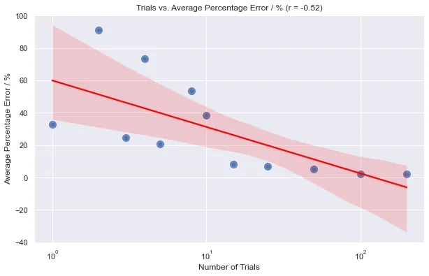 Fig. 3: Graphing the percentage error by number of trials the annealer was run.